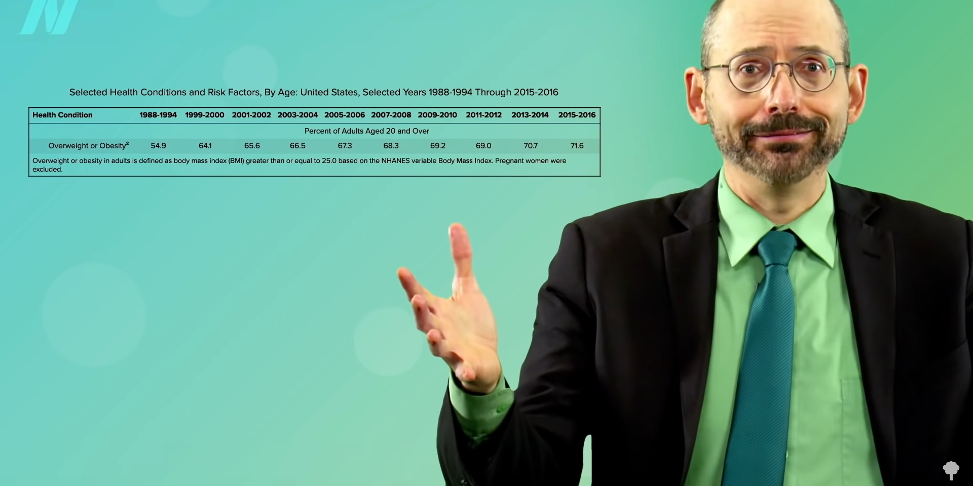 In 2013, the American Medical Association voted to classify obesity as a disease (going against the advice of its own Council on Science and Public Health). Not that it necessarily matters what we call it, but disease implies dysfunction. Bariatric drugs and surgery are not correcting an anomaly in human physiology. Our bodies are just doing what they were designed to do in the face of excess calories. Rather than being some sort of disorder, weight gain is largely “a normal response by normal people to an abnormal environment.” As you can see below and at 4:12 in my video, more than 70 percent of Americans are now overweight. It’s normal.
