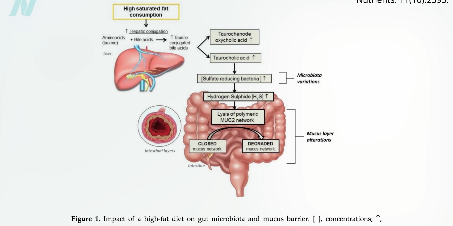 What other dietary components can make a difference? Elevated consumption of saturated fat, which is found in meat, dairy, and junk food, can cause the growth of bad bacteria that make the rotten-egg gas hydrogen sulfide, which can degrade the protective mucus layer. You can see the process below and at 3:21 in my video Avoid These Foods to Prevent a Leaky Gut.