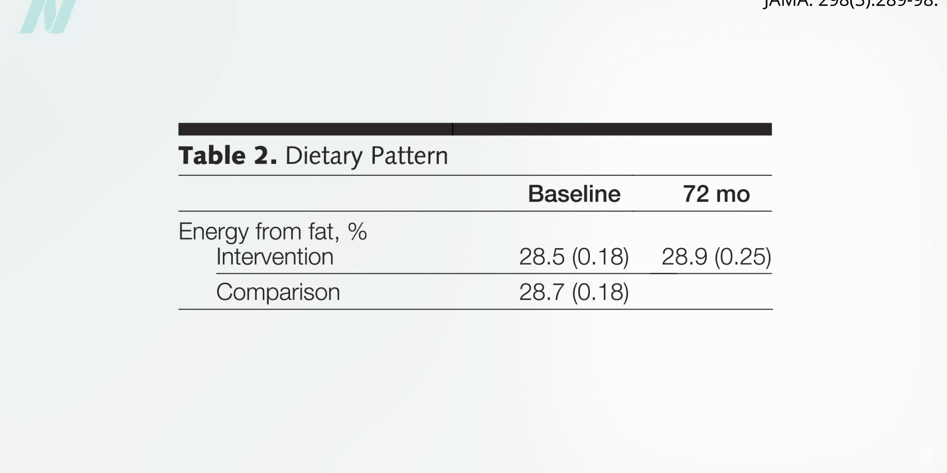 Any time there’s an unexpected result, you must question whether the participants actually followed through with study instructions. For instance, if you randomized people to stop smoking and they ended up with the same lung cancer rates as those in the group who weren’t instructed to quit, one likely explanation is that the group told to stop smoking didn’t actually stop. In the Women’s Healthy Eating and Living Study, both the dietary intervention group and the control group started out at about 30 percent of calories from fat. Then, the diet group was told to lower their fat intake to 15 to 20 percent of calories. By the end of the study, they had in fact gone from 28.5 percent fat to 28.9 percent fat, as you can see below and at 1:16 in my video The Food That Can Downregulate a Metastatic Cancer Gene. They didn’t even reduce their fat intake. No wonder they didn’t experience any breast cancer benefit.