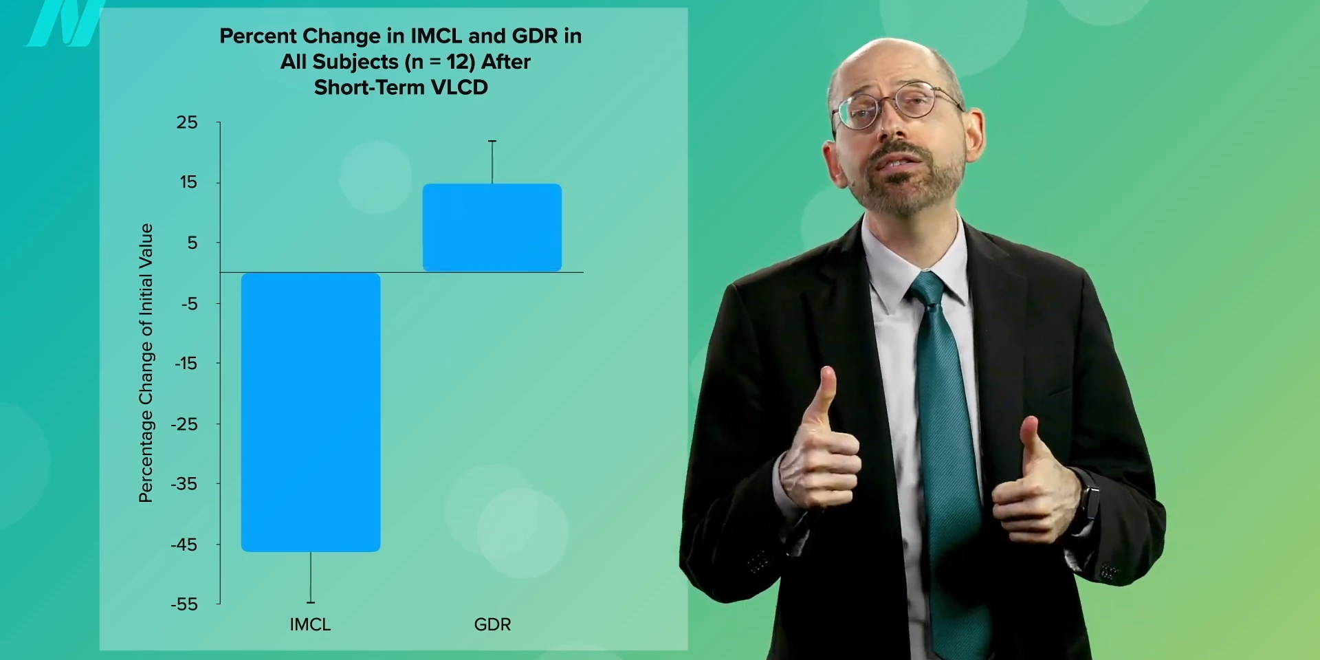 When people are put on a very low-calorie diet—700 calories a day—fat can get pulled out of their muscle cells, accompanied by a corresponding boost in insulin sensitivity, as shown below and at 4:43 in my video Fasting to Reverse Diabetes.