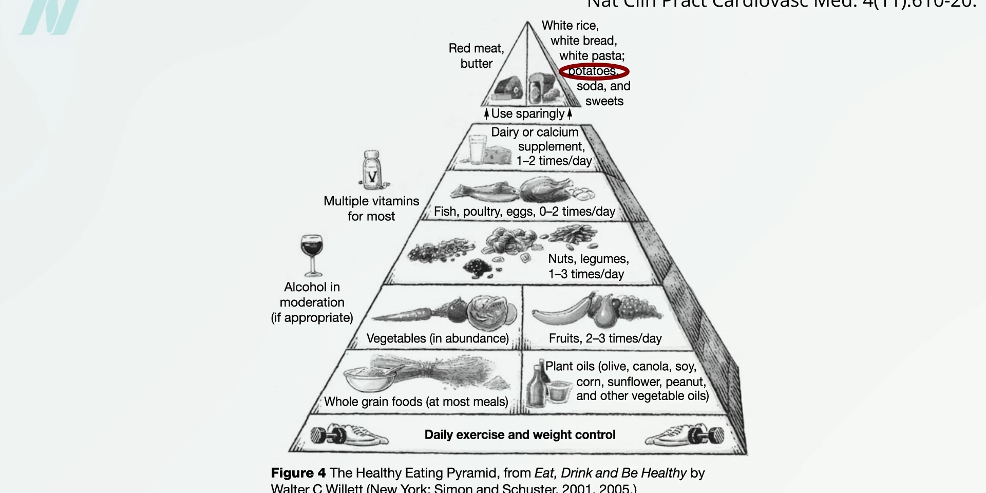 Okay, but that was just one study. By 2015, Harvard researchers had also looked into other cohorts, including the all-male Health Professionals Follow-up Study to complement the all-female Nurses’ studies, and they continued to find a small increased diabetes risk associated with baked, boiled, or mashed potatoes, though french fries do indeed appear nearly five times worse. The authors concluded that potatoes are considered to be a healthy vegetable in dietary guidelines, but the current evidence “casts serious doubts on this classification.” Walter Willett, the chair of Harvard’s nutrition department at the time, went a step further, suggesting potatoes should be siloed up there with candy, as you can see below and at 2:18 in my video Do Potatoes Increase the Risk of Diabetes?.